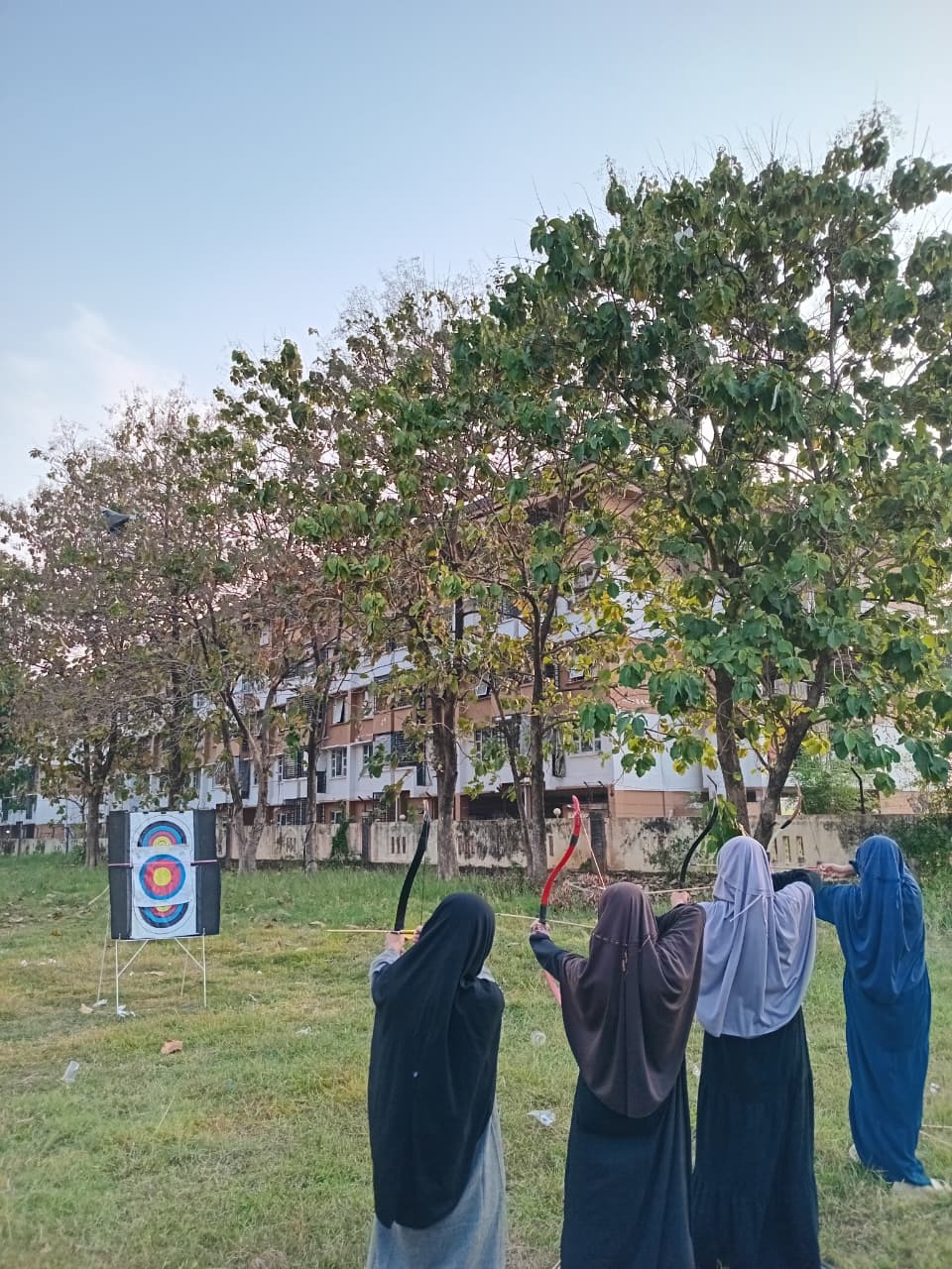 Kegiatan Ekstra Panahan merupakan salah satu ekstra pilihan yang ada di Pesantren Muhammadiyah Kudus. Panahan juga termasuk salah satu olahraga yang disunnahkan oleh Nabi Muhammad SAW. Ekstra Panahan sendiri diadakan untuk mengasah bakat, mengembangkan karakter, dan melatih fokus serta koordinasi tubuh santri melalui kegiatan menembak menggunakan busur dan anak panah. Ekstrakulikuler ini mengajarkan santri teknik dasar memanah, seperti posisi berdiri dan cara memegang busur, serta mengembangkan nilai-nilai seperti kesabaran, kedisiplinan, dan kepercayaan diri. Ekstra Panahan juga bertujuan memberikan wadah bagi santri untuk menyalurkan minat dan bakat mereka pada olahraga panahan. Ekstra Panahan sendiri dilaksanakan pada hari ahad sore dengan dipandu oleh pelatih berpengalaman.
